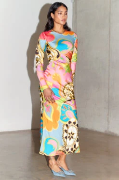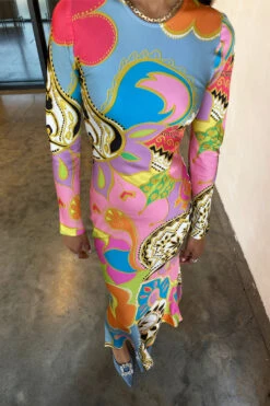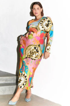 We love to promote dopamine dressing, and this skirt in particular sums it all up. Mood boosting colour for you and those around you, and bold prints to leave people’s heads turning. The sexy body skimming silhouette keeps things simple and flattering, and looks great with a pair of little heels.
