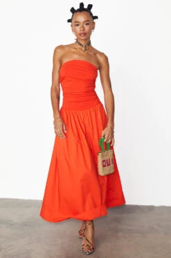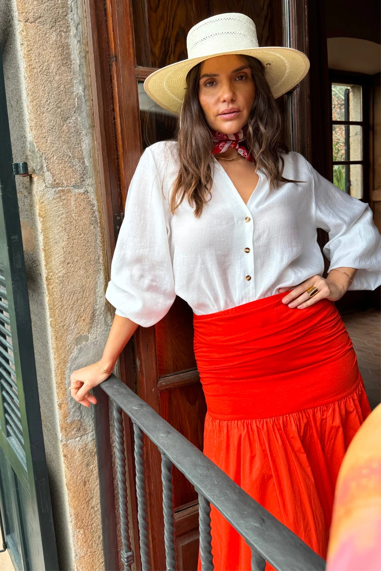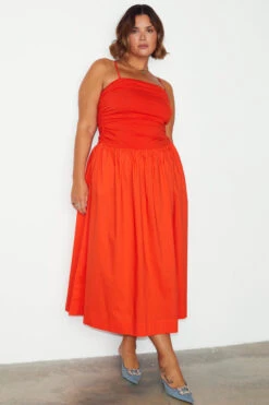 Made from a light breathable cotton, the skirt flows out from the hips to the ankles, and allows for so much gorgeous movement. The top is a soft and stretchy T-shirt material, that features ruched seams down the sides (so you can wear slightly scrunched for your desired length and fit), an elasticated top seam to prevent slipping, and detachable straps. Our founder loves to wear this dress with the top around her waist, and pairs it with one of our Miley shirts.