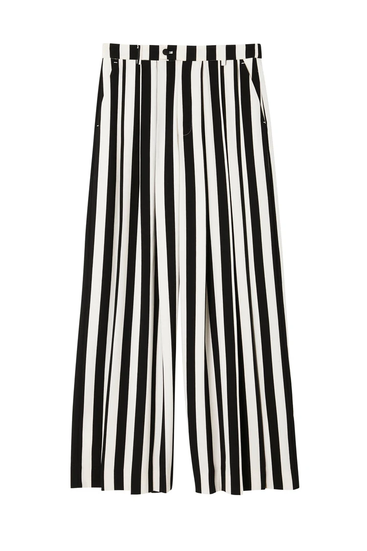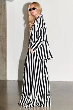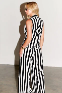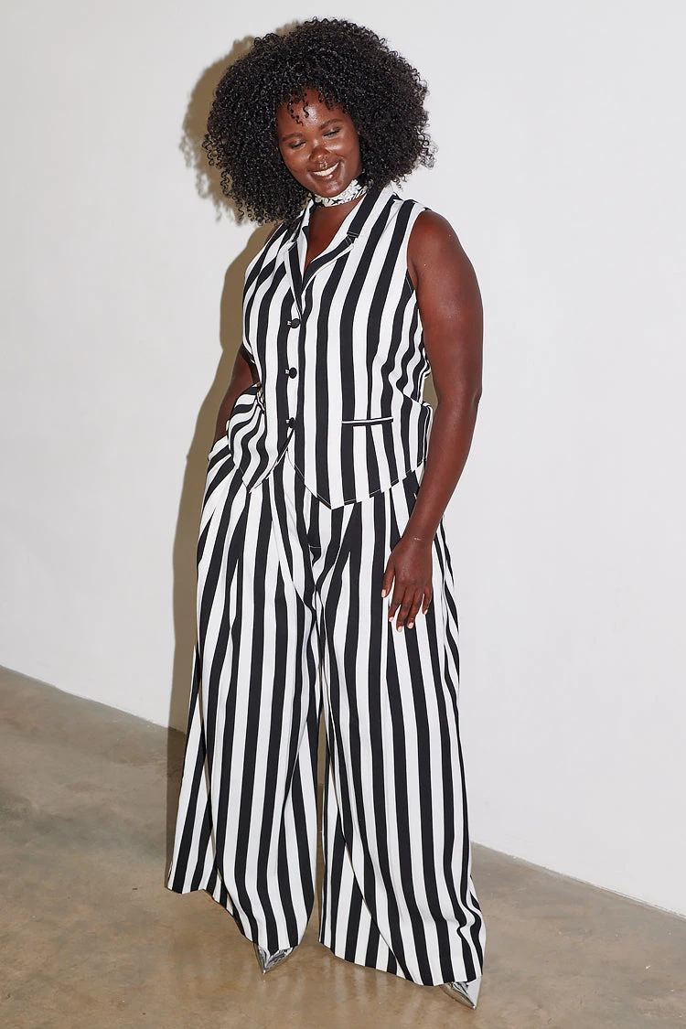 The perfect wide leg trouser fit for all seasons. Soft tailoring looks so elevated and chic, and even better, can be worn so streetwear/casual, or sophisticated office wear. The bold monochrome stripes ensure that head-turning NFD element that we love. To break up the co-ord, pair the trouser with your favourite white tee or tank.