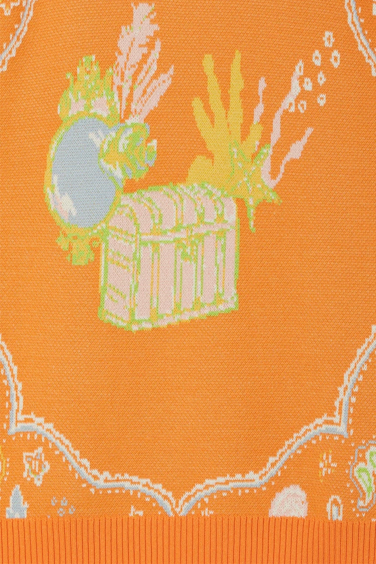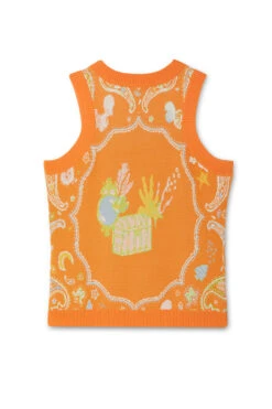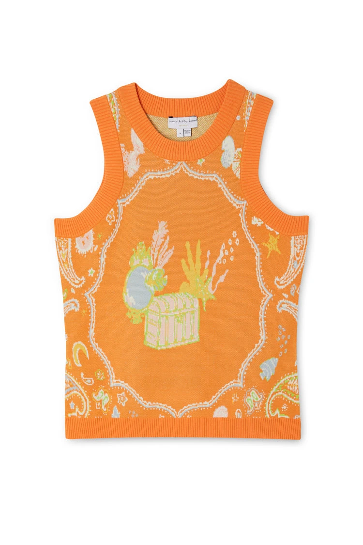 The perfect knit tank top is a combination of sophistication and style, featuring ribbed trim and a bold and beautiful print -it’s a take on our iconic bandana print, but heightened for summer with gorgeous mermaid, trinket and sea life details on an orange base. Show everyone your daring side – whether you’re at a festival or pairing it with your favourite denim.