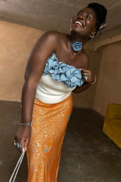 Perfect for all your summer needs, crafted from a weighty soft satin-all great to layer through seasons with a marine-inspired print and an elasticated waistband, this breezy skirt is made for ease and comfort. Enjoy the season in style, go festival chic with docs or brunch with sandals.
