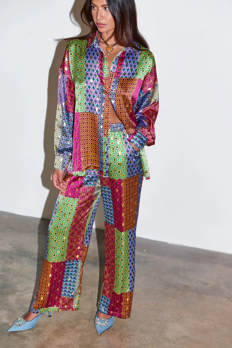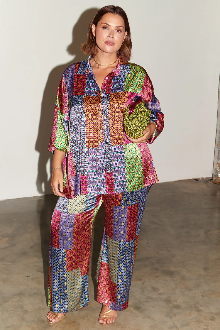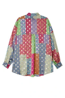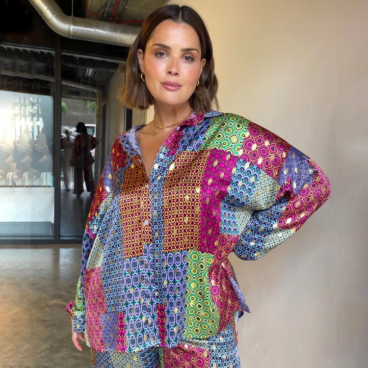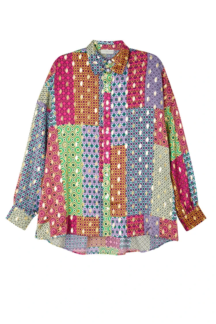 Emblazoned with a colourful patchwork of geometric prints, this shirt is a go to for every occasion. Whether it’s day or evening dressing, regardless of the season. With a summary down front (amazing for breastfeeding or bump dressing) you can throw on over your favourite swim or tank top too.