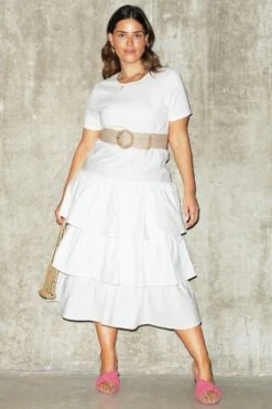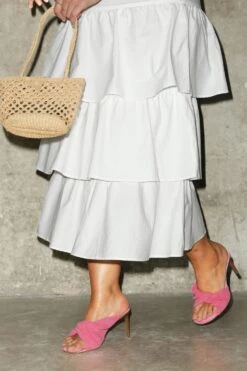 The most glorious dress for transitional seasons… The Carrie has a T-shirt body that falls into a luxurious tiered midi skirt. We love this look with lots of gold jewellery, a big tote and some platform shoes. Alternatively, style with strappy heels and a clutch for a sassier look.