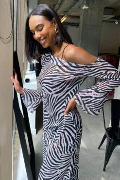 A sheer dream. The zebra printed ophelia dress features a sheer, lightweight fabric which is perfect for hot summer days poolside or by the beach. Wear with the slip and heels for a fire date night or over swimwear for a poolside lunch.