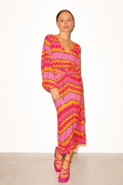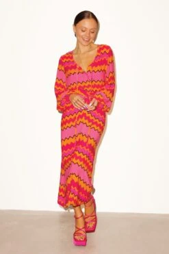 A fun and bold colour palette in an elegant midi skirt featuring a flattering ruched detailing through the front. Makes this the perfect skirt